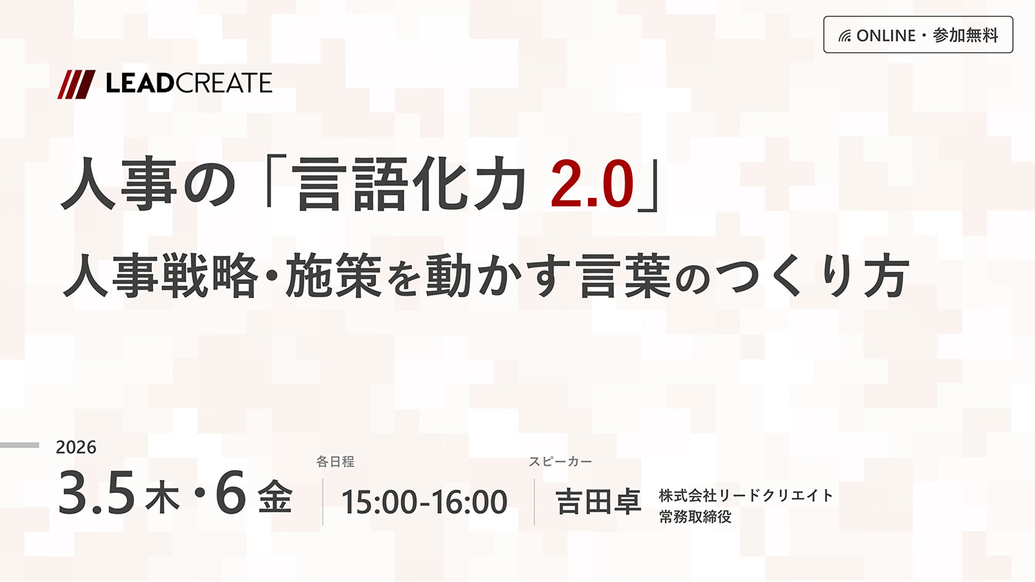 | 対象 | 経営幹部、事業責任者、CHRO、HRBP、および人事・人材開発ご担当者様