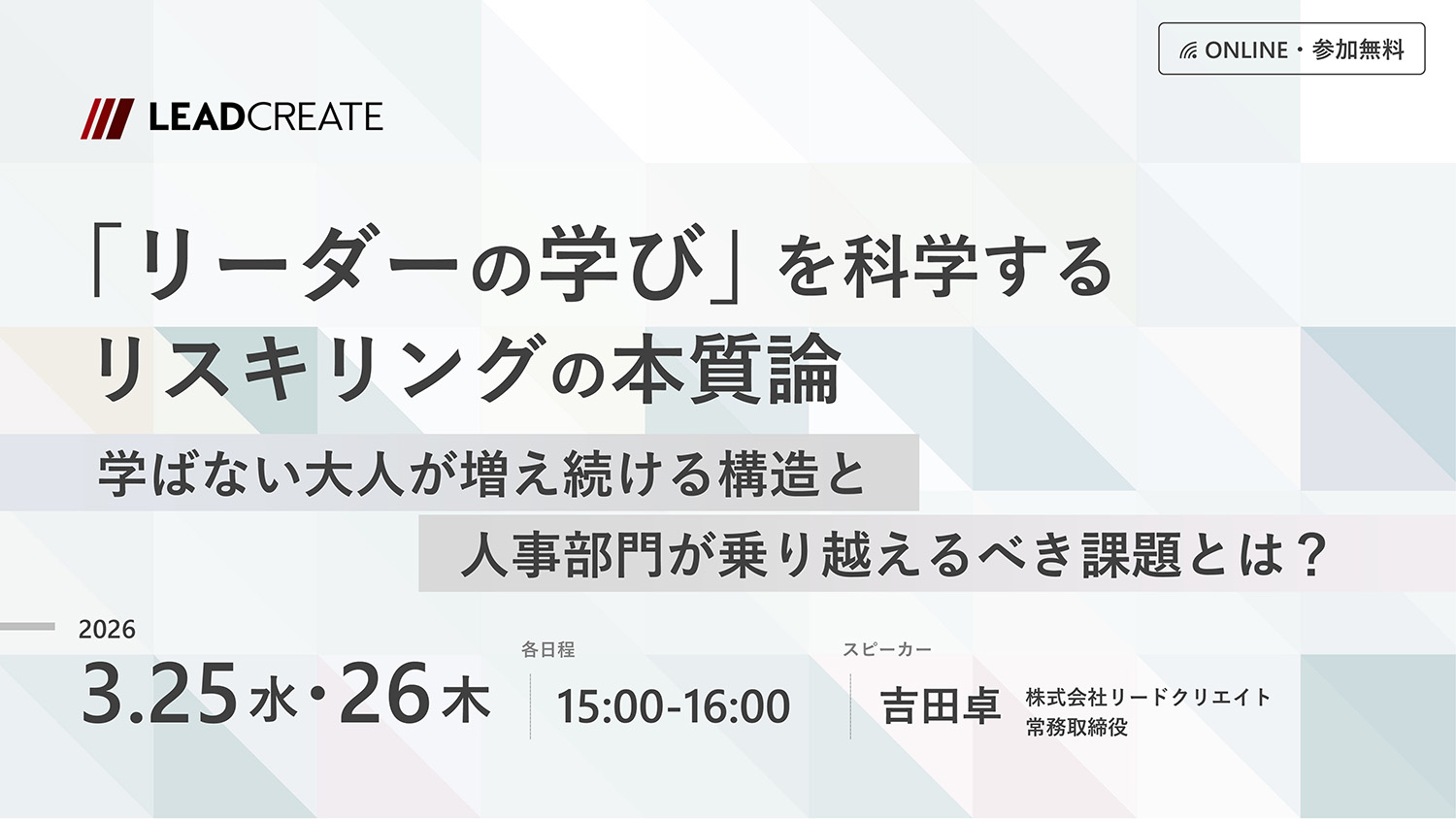 | 参加URL | メールにてご案内します |